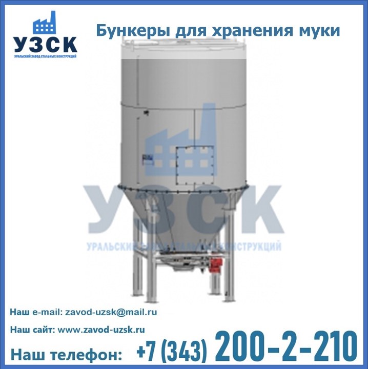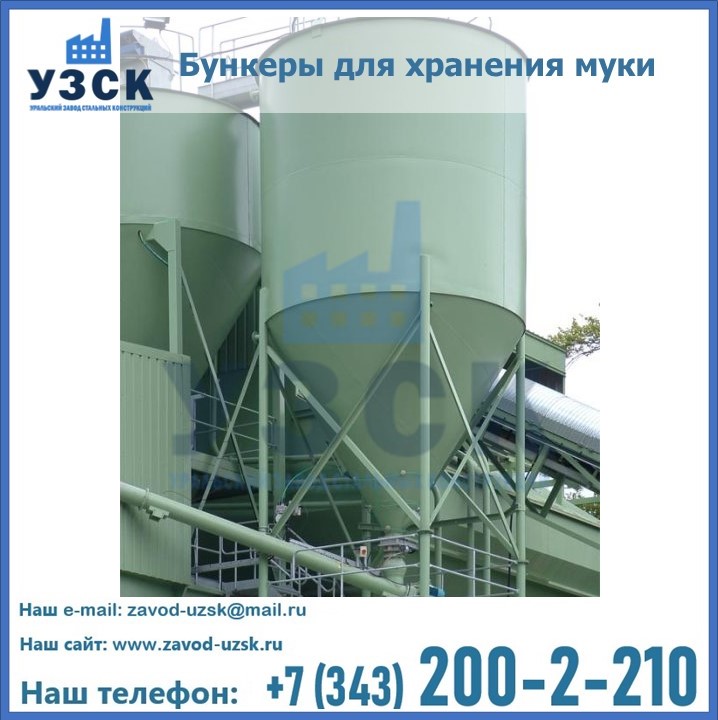 Завод «УЗСК» в Златоусте проектирует, производит и поставляет целевое оборудование, в том числе, бункеры для хранения муки и прочих сыпучих материалов.
