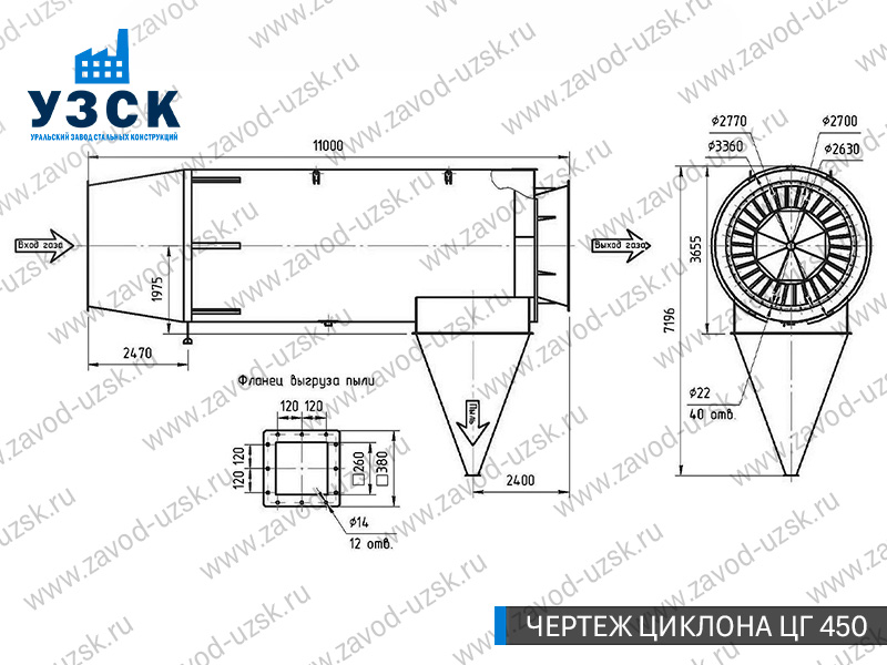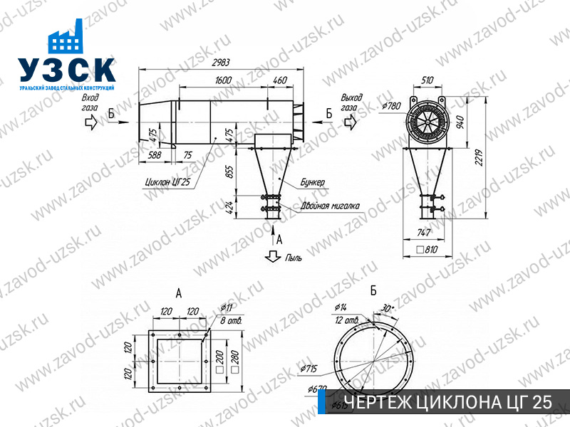 Монтаж циклона-искрогасителя ЦГ должен осуществляться непосредственно к горизонтальному вентиляционному каналу на входе в систему фильтрации и аспирации. Заказать изготовление по индивидуальному техзаданию или купить готовый циклон-искрогаситель ЦГ на заводе УЗСК в Златоусте можно, оставив заявку прямо на сайте или позвонив по указанному телефону, уточнив все детали касательно продажи оборудования.