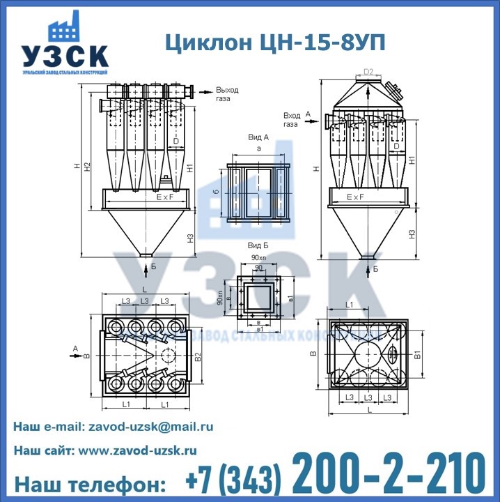 Завод «УЗСК» в Златоусте предлагает большой выбор циклонов ЦН-15-500×8УП и прочих устройств, полностью укомплектованных и готовых к эксплуатации. Мы гарантируем соответствие оборудования всем требованиям ГОСТ и ТУ, износостойкость и высокую производительность предлагаемого оборудования. Уральский Завод Стальных Конструкций изготавливает и продает надежное, эффективное и производительное оборудование, имеющее длительную гарантию и большой эксплуатационный ресурс. Если требуется изготовить циклон нестандартных размеров, то такой вариант выполнения заказа тоже предусмотрен, так как предприятие имеет собственные производственные площади и надежных поставщиков. На все поставляемое или производимое оборудование имеются чертежи и прочая техническая документация. Заказать и купить циклоны или прочее оборудование высокого качества и по доступной цене можно через наш сайт или по указанному в разделе «Контакты» телефону.