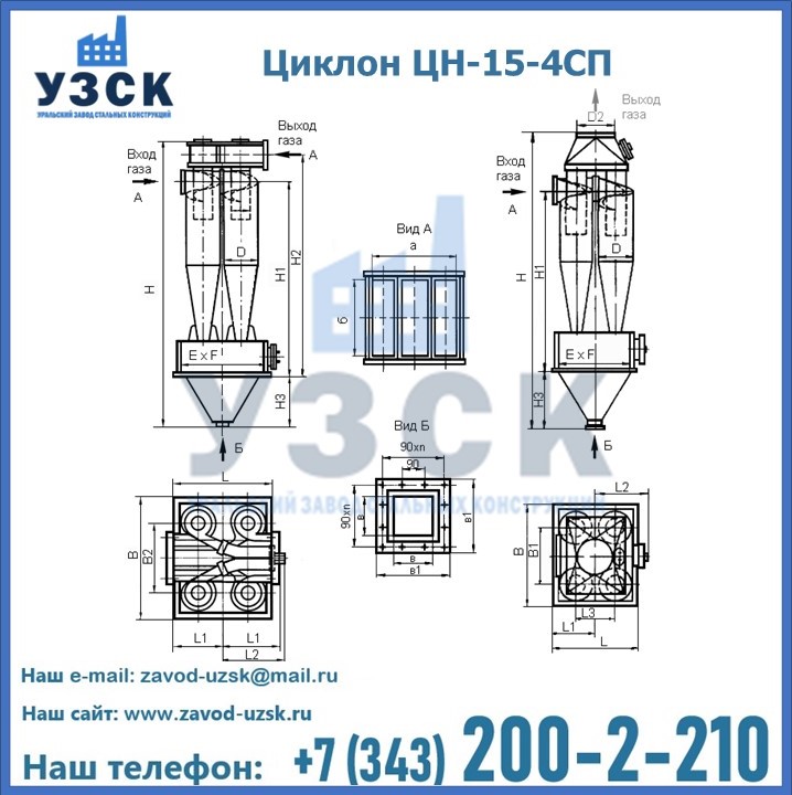 Завод «УЗСК» в Златоусте предлагает большой выбор циклонов ЦН-15-900×4СП и прочих устройств, полностью укомплектованных и готовых к эксплуатации. Мы гарантируем соответствие оборудования всем требованиям ГОСТ и ТУ, износостойкость и высокую производительность предлагаемого оборудования. Уральский Завод Стальных Конструкций изготавливает и продает надежное, эффективное и производительное оборудование, имеющее длительную гарантию и большой эксплуатационный ресурс. Если требуется изготовить циклон нестандартных размеров, то такой вариант выполнения заказа тоже предусмотрен, так как предприятие имеет собственные производственные площади и надежных поставщиков. На все поставляемое или производимое оборудование имеются чертежи и прочая техническая документация. Заказать и купить циклоны или прочее оборудование высокого качества и по доступной цене можно через наш сайт или по указанному в разделе «Контакты» телефону.