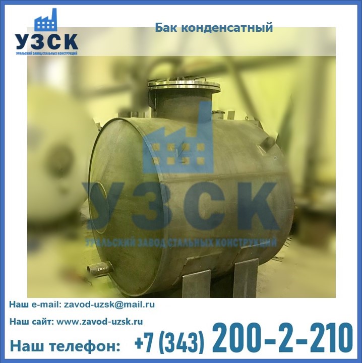 Многие заказчики стараются конденсатные баки купить по выгодной цене в компании «УЗСК» в Златоусте. Причин несколько. Производитель поставляет емкости с полным комплектом лестниц, площадок обслуживания. Бак после гидравлических испытаний покрывают специальной внутренней и наружной краской, накладывают теплоизоляцию или наваривают крепеж для навески минматов. Условия теплоизоляции согласуются с заказчиком.