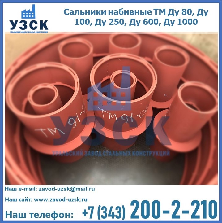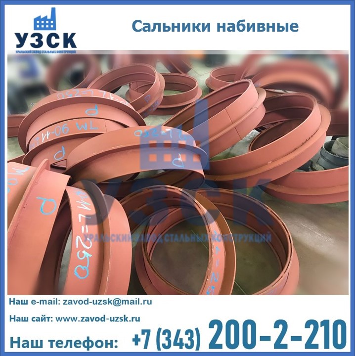 На производственных площадях Уральского Завода Стальных Конструкций в Златоусте профессиональные сотрудники занимаются проектированием и разработкой различных закладных деталей, в частности осуществляется производство и реализация набивных и нажимных сальников. Все изделия, которые можно приобрести у нас, отвечают установленным требованиям по ГОСТу, а также прочей нормативной документации.